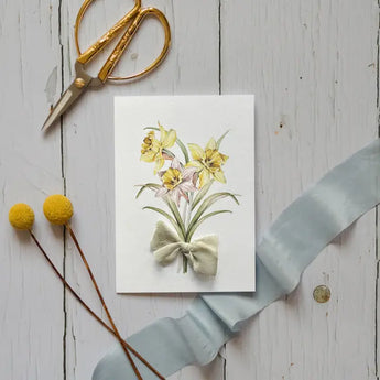 Daffodil Floral Hand Tied Silk Ribbon Greetings Card
