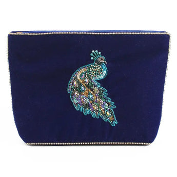 This exquisite Doris Peacock Medium Pouch is a stunning testament to traditional Indian craftsmanship. Each piece is meticulously handcrafted by skilled artisans who layer iridescent beads and shimmering sequins to create a mesmerizing peacock design that catches the light beautifully. The intricate beadwork showcases vibrant colours and intricate detailing that transforms this pouch into a wearable work of art. Perfect for storing jewellery, cosmetics, or treasured keepsakes, its medium size offers practical versatility without compromising on elegance.