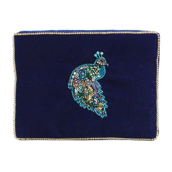 Discover the charm of the Doris Peacock Small Pouch, a beautifully handcrafted treasure created by skilled Indian artisans. This compact accessory features intricate beadwork adorned with iridescent beads and sequins that shimmer with every movement, capturing the natural elegance of a peacock in miniature form. Despite its petite size, this pouch packs impressive functionality; ideal for safeguarding coins, credit cards, keys, or those precious small items you want to keep secure.