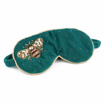 Indulge in restful slumber with the exquisite Doris Teal Golden Bee Sleep Eye Mask, a luxurious blend of comfort and artisanal beauty. Handcrafted by skilled Indian artisans, this plush velvet eye mask features an enchanting golden bee design adorned with intricate glass bead embellishments that add a touch of sophistication to your bedtime routine. The sumptuous velvet feels wonderfully soft against delicate skin, while the thoughtfully designed elasticated strap ensures a secure yet comfortable fit that won't slip during the night.