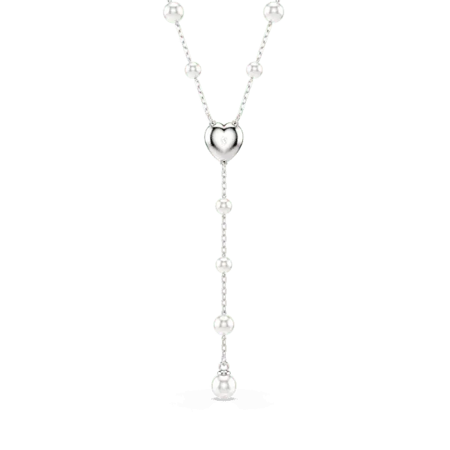 Ariana Grande x Swarovski Y Necklace Crystal Pearl Heart White Rhodium Plated
