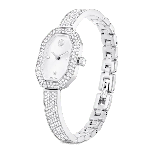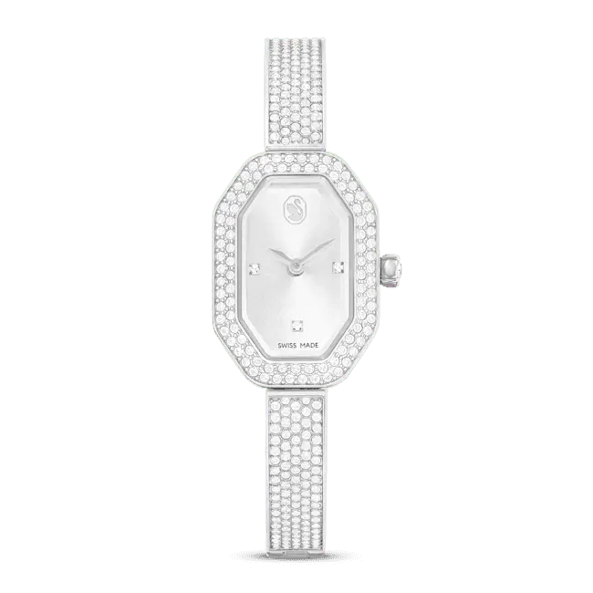 Swarovski Dextera Bangle Watch Swiss Made Metal Bracelet Silver Tone