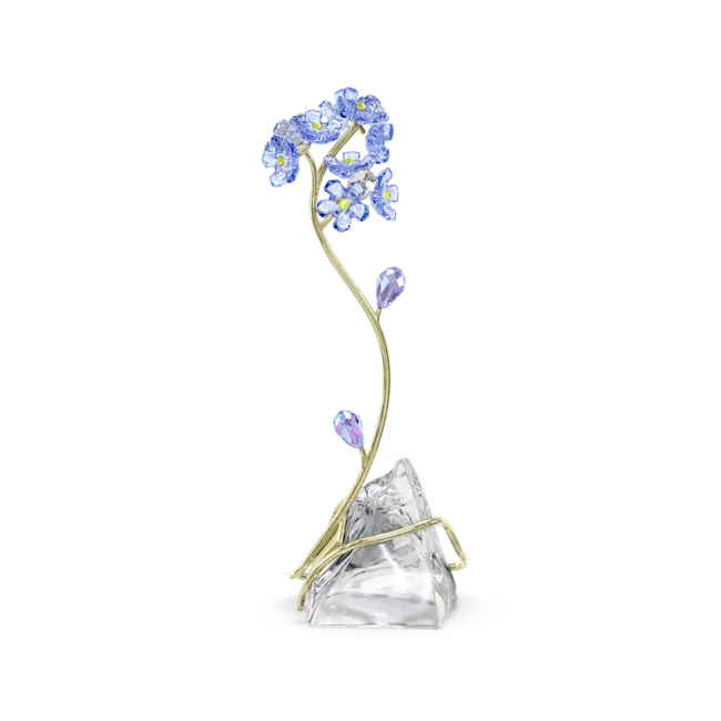 Crafted with meticulous skill, this stunning creation captures the beauty of one of nature’s most eye-catching flowers. The blue forget-me-not is produced with 876 light-catching facets, displayed atop a gold-tone metal stem that gracefully entwines across a natural unfaceted crystal base. Representing true love and faithfulness, this freestanding design would make a truly impressive gift for a loved one, serving as a permanent reminder that they’re in your thoughts. No vase or base required. Decoration object. Not a toy. Not suitable for children under 15.