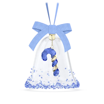 Ring in the start of the holiday season with this joyous bell ornament. The traditional motif has been skillfully crafted in glass with approximately 1,301 small crystal rocks covering the outside as if the piece has been dipped in sugar. A candy cane clapper in Swarovski’s signature blue with luxurious gold-tone metal stripes is suspended in the center. The bell hangs from a blue grosgrain ribbon tied in a bow and includes a champagne gold-tone metal tag with a single chaton. Crafted with 253 radiant facets, this holiday ornament would be a beautiful addition to any festive décor. Decoration object. Not a toy. Not suitable for children under 15.