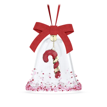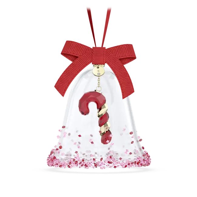 Ring in the start of the holiday season with this joyous bell ornament. The traditional motif has been skillfully crafted in glass with approximately 1,301 small crystal rocks covering the outside as if the piece has been dipped in sugar. A candy cane clapper in Swarovski’s signature red with luxurious gold-tone metal stripes is suspended in the center. The bell hangs from a red grosgrain ribbon tied in a bow and includes a champagne gold-tone metal tag with a single chaton. Crafted with 253 radiant facets, this holiday ornament would be a beautiful addition to any festive décor. Decoration object. Not a toy. Not suitable for children under 15.