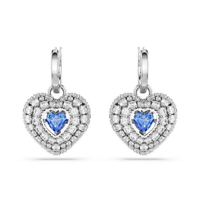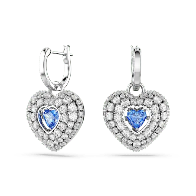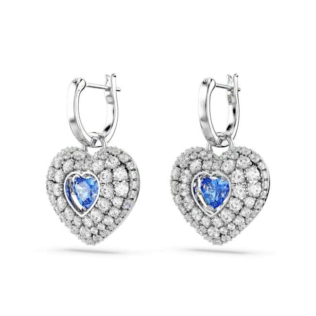 Swarovski Idyllia Drop Earrings Heart Blue Rhodium Plated