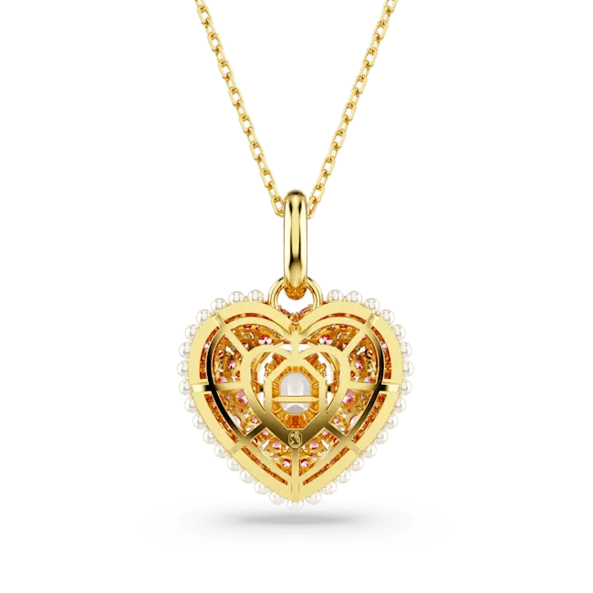 Swarovski Idyllia Pendant Octagon Cut Crystal Pearls Heart Pink Gold-Tone Plated