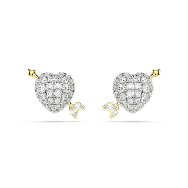 Swarovski Idyllia Stud Earrings Heart With Arrow White Mixed Metal Finish