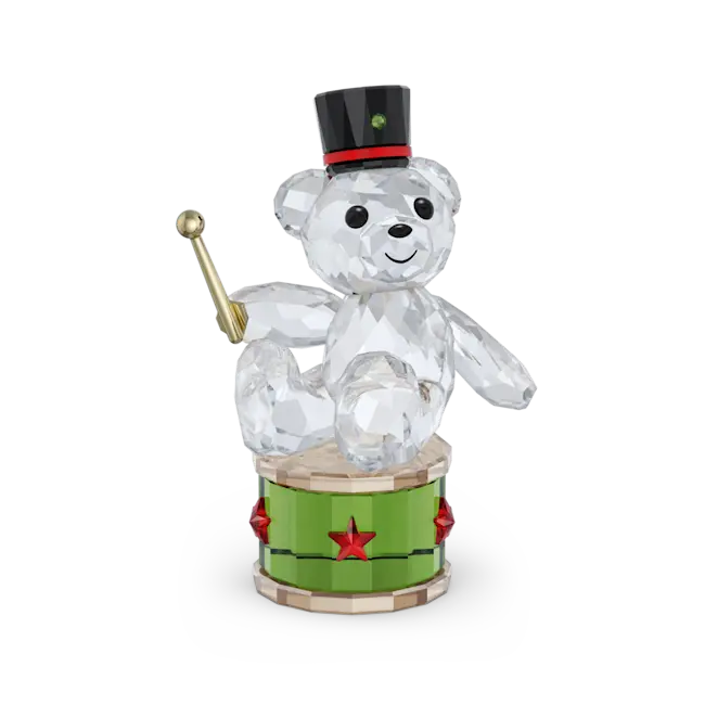 Continuing the tradition of Swarovski’s lovable Kris Bear, this set includes both Kris Bear 130th Anniversary & Kris Bear Holiday Annual Edition 2025. The 2025 Annual Edition bear is full of rhythm and joy. Crafted with 730 facets, the bear sits on a green drum, adorned in star-shaped red crystals. Champagne gold-tone metal is also used within the design to add a delicate touch of luxury. The 130th Anniversary bear is a modern remake of the classic Kris Bear on Skates, which first appeared 30 years ago. Crafted with 439 facets, the delicate details include skates made from champagne gold-tone metal, and a bright red scarf adorned with additional flatback crystals. This Kris Bear will add a touch of festive cheer as it speeds into your collection. Decoration object. Not a toy. Not suitable for children under 15.