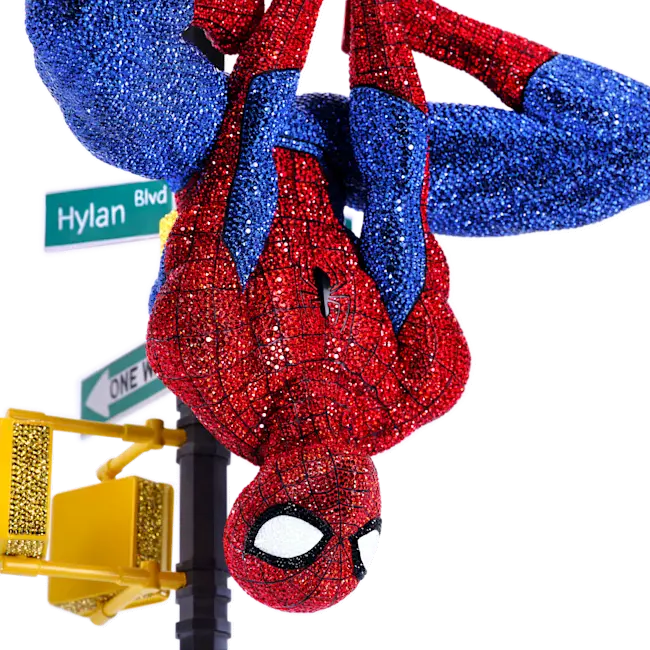 This rare and dazzling Spider-Man figurine is exclusively made to order. Taking 233 hours to complete, the show-stopping design features more than 32,000 glittering crystals, all set using our patented Pointiage technique. Furthermore, the technically challenging upside-down pose on a New York streetlamp ensures you will be getting a unique example of Swarovski's spectacular craftsmanship. The large figurine is delivered in a premium suitcase and is a collectible item that will inspire your adventurous side every day. Decoration object. Not a toy. Not suitable for children under 15.