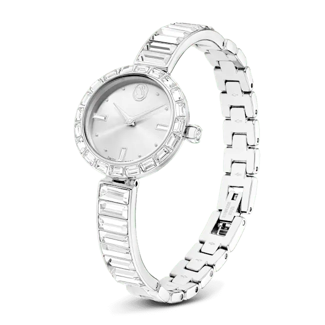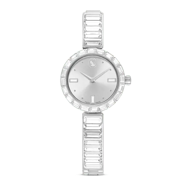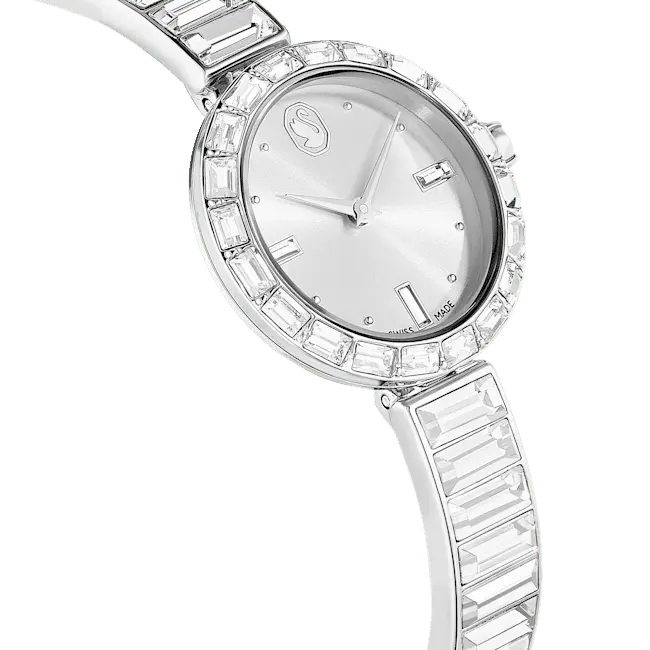 Swarovski Matrix Bangle Watch Swiss Made Crystal Bracelet Silver Tone
