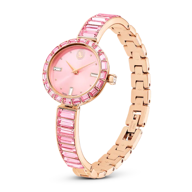 Swarovski Matrix Bangle Watch Swiss Made Pink Bracelet Rose-Gold Tone