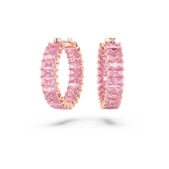 Give your casual styling an instant boost with these luscious hoop earrings from the Matrix family. The attractive colourway is uniquely eye-catching, thanks to the pairing of rose gold-tone plating and pink stones. Glittering and golden, these earrings are best worn with matching necklaces or bracelets - or give them as a charming gift.