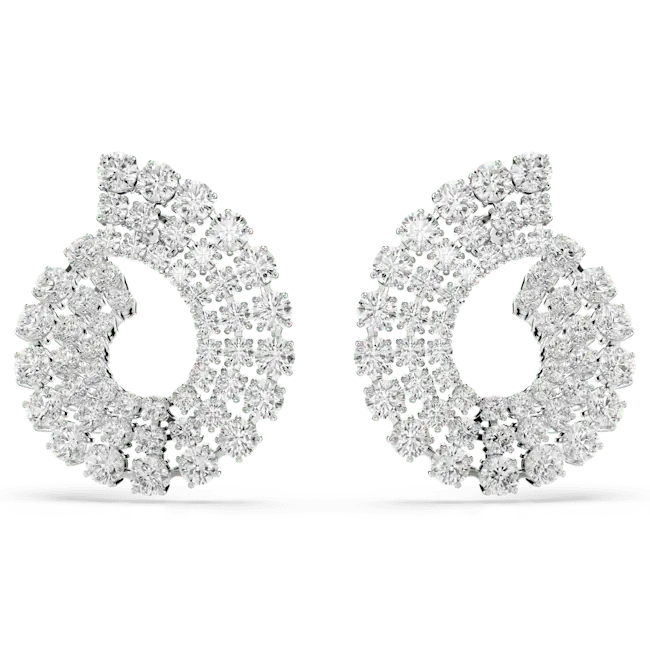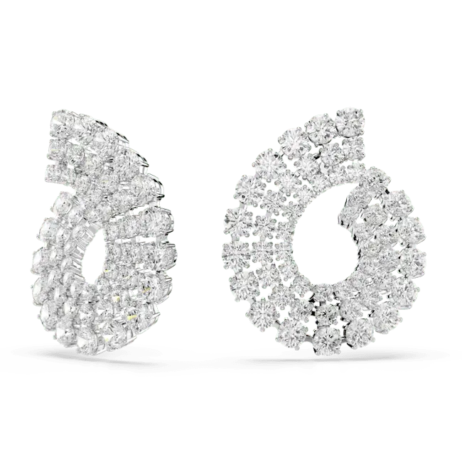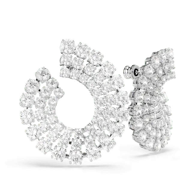 Swarovski Matrix Hoop Earrings Mixed Round Cuts White Rhodium Plated