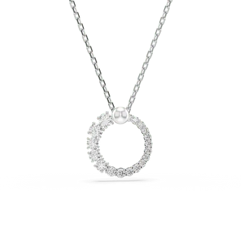 Swarovski Matrix Pendant Crystal Pearl Round Cut White Rhodium Plated