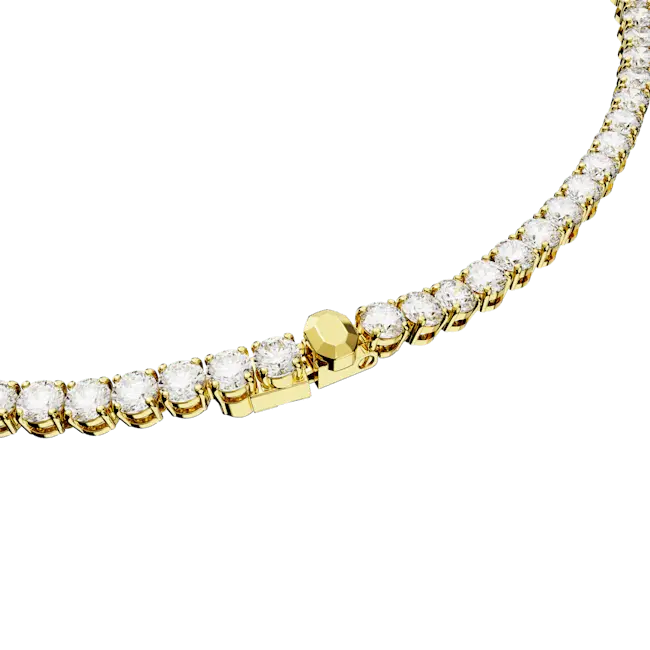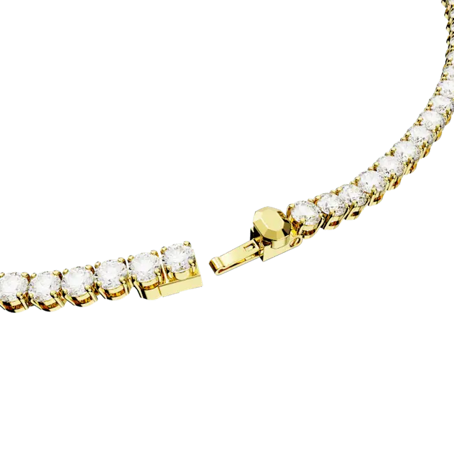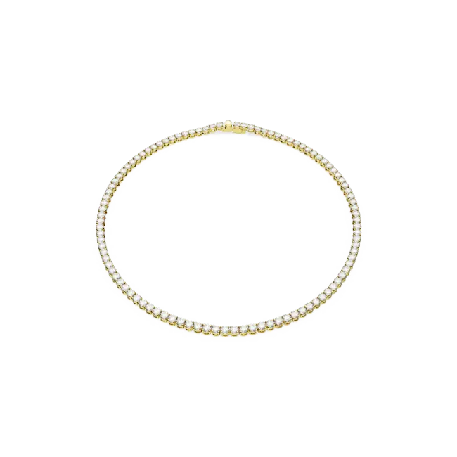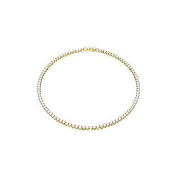 Achieving a truly resplendent look, this Matrix Tennis necklace is distinguished by the purity and elegance of its shimmering clear stones and gold-tone plated design. Each individual stone works beautifully with the next, creating an endless stream of glamour that is perfect for your everyday style. Enjoy it for yourself, or as a gift for someone special.