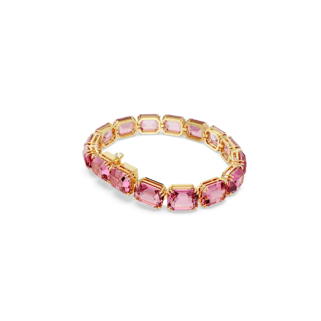 Surround your wrist in colour and light with this striking Millenia Tennis bracelet. The design is crafted with uniform, octagon-cut pink crystals in a gold-tone plated prong setting and is finished with a hidden fine jewellery-inspired fastening. An elegant wardrobe essential that will brighten any look.
