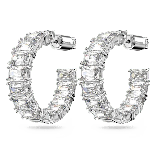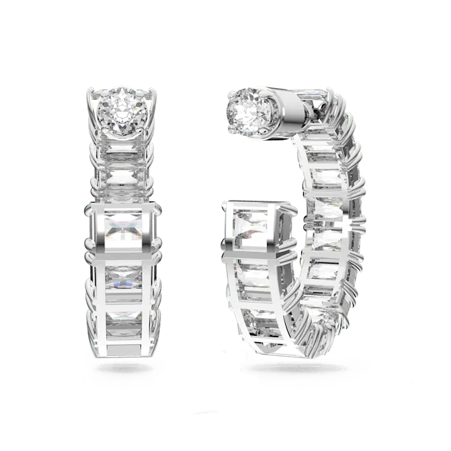 Swarovski Matrix Hoop Earrings Octagon Cut White Rhodium Plated
