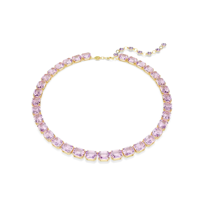 Swarovski Millenia Tennis Necklace Octagon Cut Purple Gold-Tone Plated