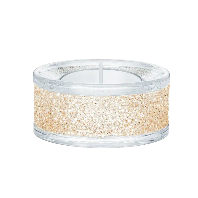 Embellished with over 1,500 Swarovski crystals set in the Crystal Rocks technique, this contemporary glass tea light holder shines brightly in golden tones. Certain to add sparkle to any room; it will create a glamorous atmosphere, day and night. A perfect gift for a loved one. Decoration object. Not a toy. Not suitable for children under 15. Candle not included.