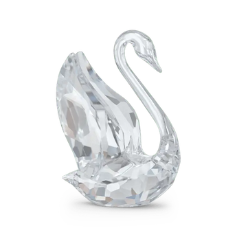 This decoration piece is inspired by the new Swarovski Swan logo. Designed by Martin Zendron, it is crafted purely from clear crystal, with the Swan's head and neck shaped to form an elegant 'S' for Swarovski. Looking towards the future, with its wings lifted and ready for take-off, this graceful design celebrates the brand's unique craftsmanship and heritage in a modern and sophisticated way. Decoration object. Not a toy. Not suitable for children under 15.