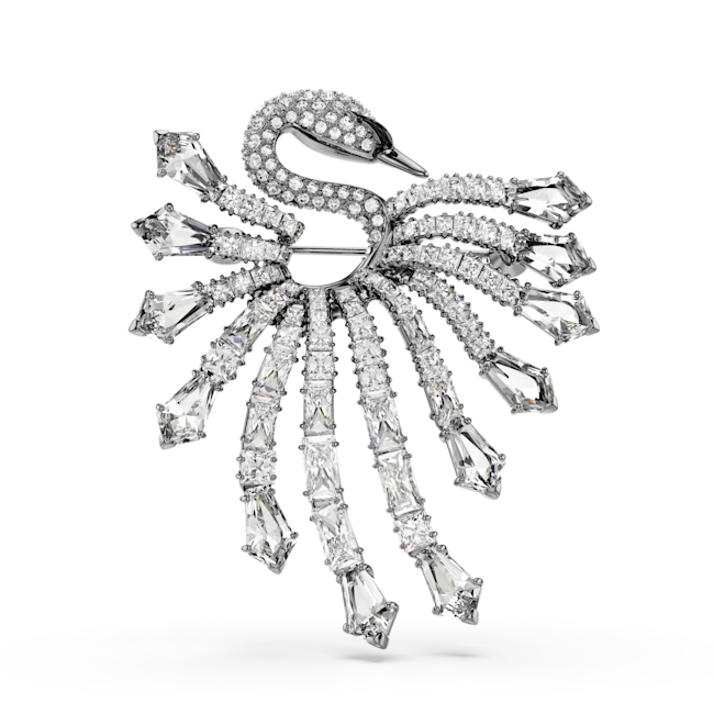 Swarovski Vienna Collection Brooch Swan White Ruthenium Plated